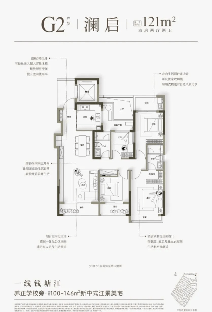 杭州钱塘江北岸唯一沿江在售宅地,钱塘江直线距离约200米,一脉之江路豪宅带,同频钱江新城CBD繁华。