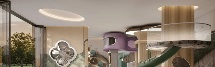将架空层功能与室外景观功能统一考量,打造儿童游乐场、预约制教室、自习+阅读、咖啡吧,形成充满活力与开放包容的会客厅。
