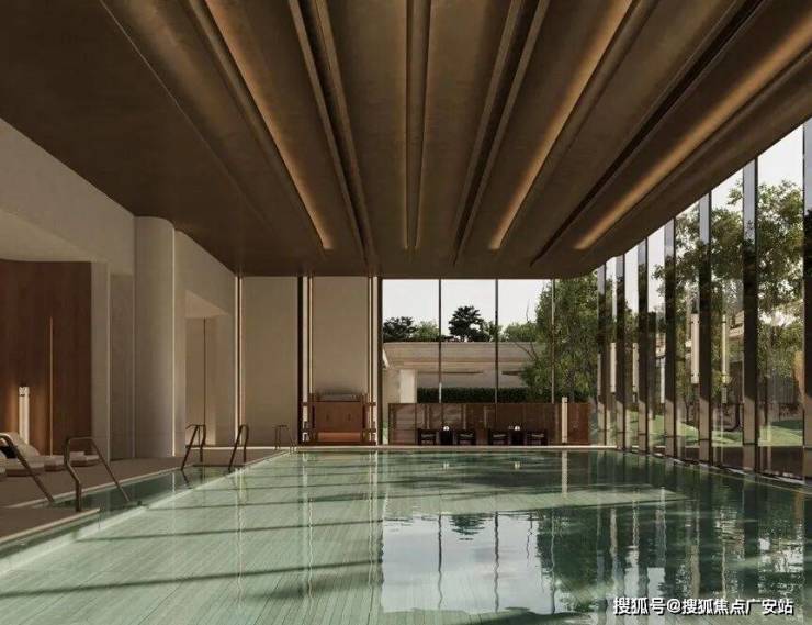 约2500平方米的「群岛会所体系」是滨江社交主场。其核心是上海鲜有的巨幅透明“全景悬浮泳池”,配合普拉提室、瑜伽教室等私享预约空间,成为业主焕新身心的静谧岛屿。