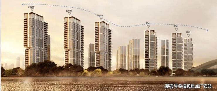 临江楼栋整体偏转32.5°,实现了“户户瞰江”的视野革命。