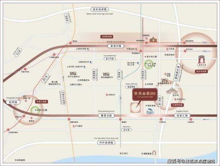 陕西南路888属于徐汇区建国西路板块,陕西南路的另一边是黄浦区,也就是原来的卢湾区,旁边是新天地,过了淮海路就是老静安。这个地段是上海真正的市中心。
