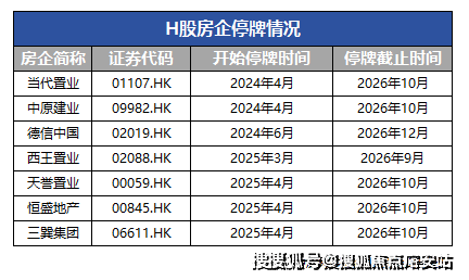 截至目前,H股仍有8家内地房企处于停牌状态,退市风险持续高悬。其中,当代置业、中原建业的停牌时间已届满18个月,根据港交所相关规则,已触及强制退市条件,退市结局已定,仅待交易所官方公告落地。德信中国的停牌期限将于2025年12月到期,若届时仍未能满足港交所复牌指引要求,也将面临退市风险。