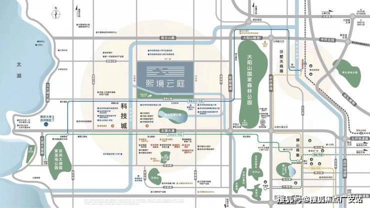 是由苏高新地产集团开发的品质住宅项目,位于苏州高新区科技城核心区域(科广路9号),总建筑面积18万平方米,占地8.3万平方米,容积率2.2,绿化率高达51%。项目由20栋建筑组成,包含5栋11层小高层和15栋18-25层高层住宅,规划总户数1534户,车位配比1:1.225,物业费3.09元/㎡·月。作为科技城板块的现房项目,一期已于2024年底交付,二期计划2025年5月交付,实现"所见即所得"的购房保障