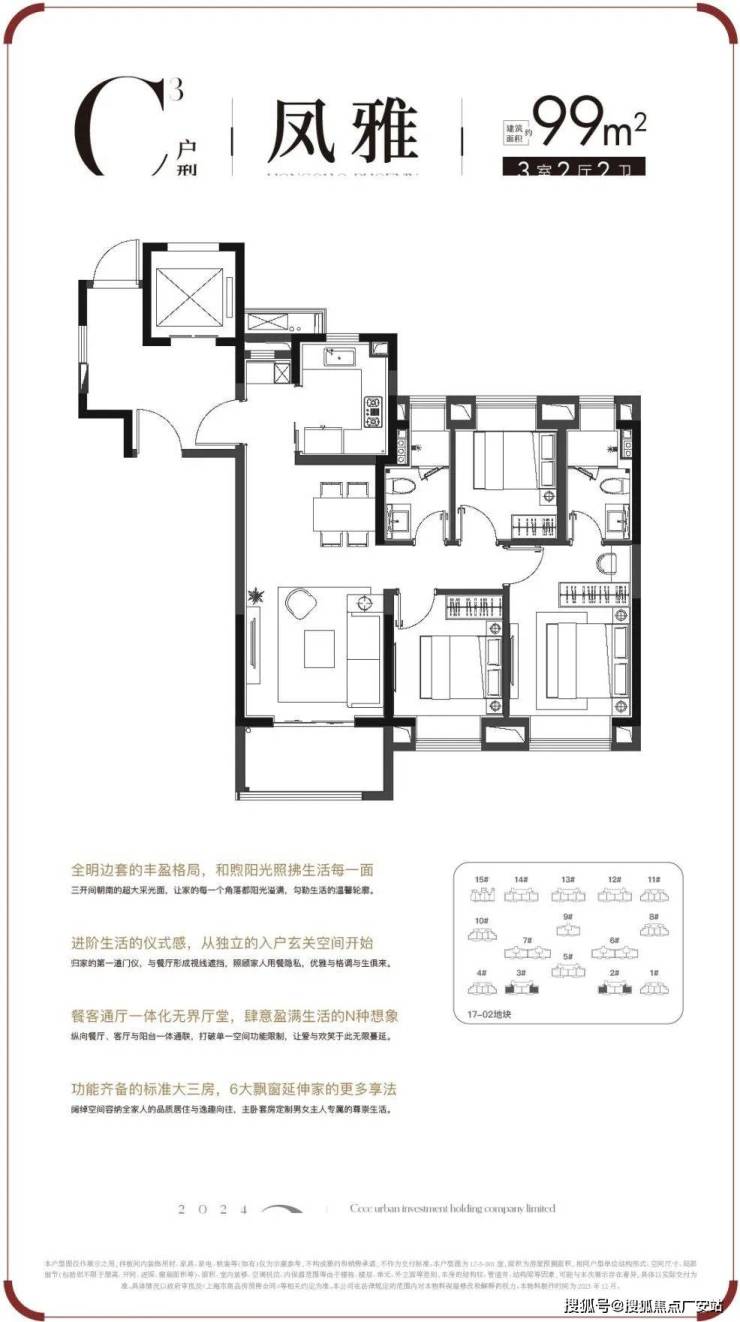 户型产品:主力户型为建面约78-99㎡三房,兼顾刚需与刚改需求,得房率约80%,配备中央空调、地暖、新风系统等精装交付标准