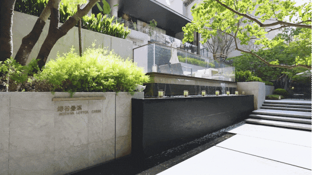 走进来,便是满眼绿意的下沉式景观庭院,拾级而上,两侧景观在阳光的照耀下呈现出非凡的光影,还有潺潺流水相伴,带来度假式的沉浸体验。