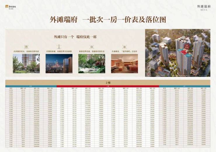 外滩瑞府二批次1号、3号楼少量续销,三批次收官之作,推出4号楼,建面约124-165㎡3-4房,总价约1554-2784万。(具体批次一房一价表及户型图见文末)