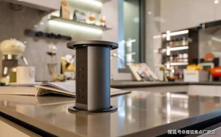 仔细看,厨房的岛台上还放置了一个 升降插座! 现在看让人眼前一亮,而未来的生活你会深深感受到它有多么实用!