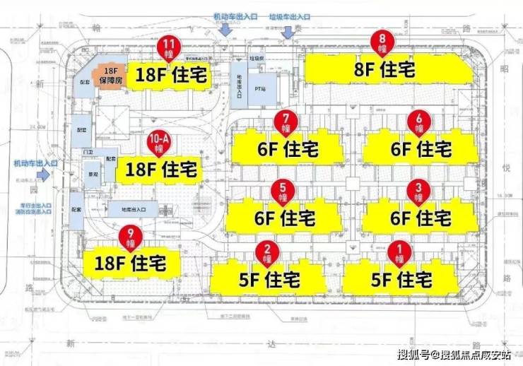 建筑层数:1#2#为5层,3#5#6#7#为6层,8#为8层,9#10-A#11#为18层,10-B#10-C#12#13#为1层,14#为3层。