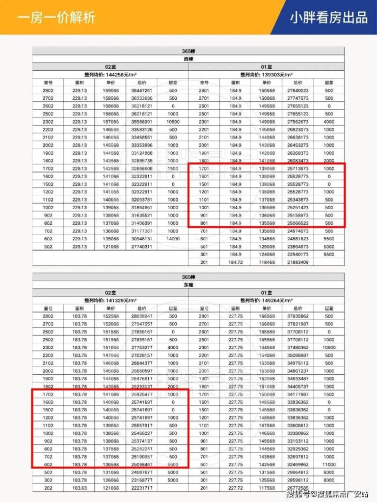 注意看价格表,2500万是项目建面约185㎡的主力价格段,买的都是中间楼层,并非低区。228㎡户型最贵3794万,4千万以内的预算真的是随便选!