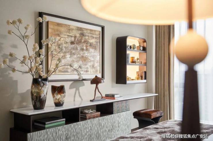 通往卧室的一处转角,通过精心设计的迷你吧,它既能提升家庭生活品质的实用需求,又能成为家庭文化的一部分。