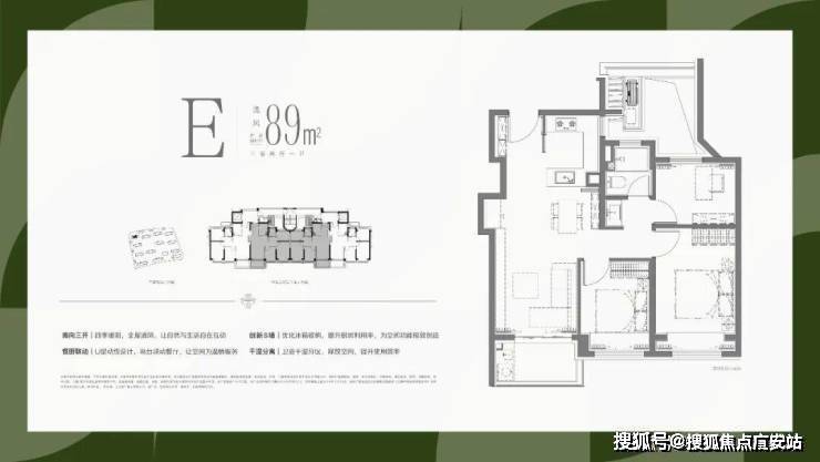 89㎡ 3 房 2 厅 1 卫:总价370-420 万|刚需入门,三开间朝南,全明户型