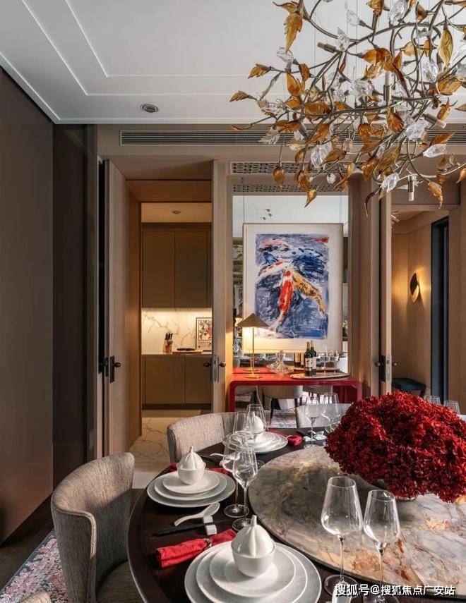The hostess is preparing meals in the kitchen, the hostess is temporarily turning on the computer at the dining table to handle work, the children are playing in the living room, and the elderly are fiddling with flowers and plants by the window. They can see each other at a glance.