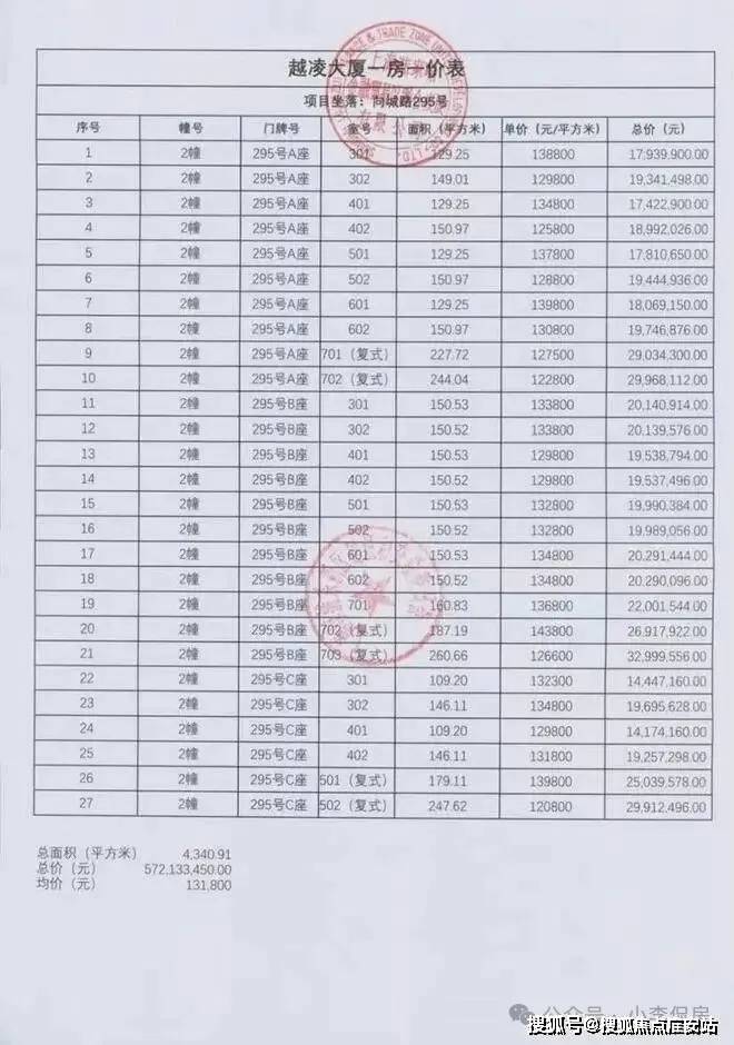 一房一价表