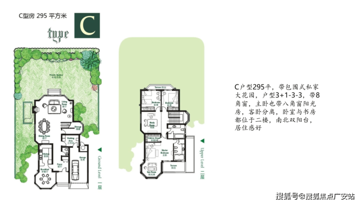 产品设计:纯地上2层,无地下室;保加利亚维纳多天然石材立面(北京宝格丽酒店同款);8.3米挑空凯旋门入户,户户私家庭院