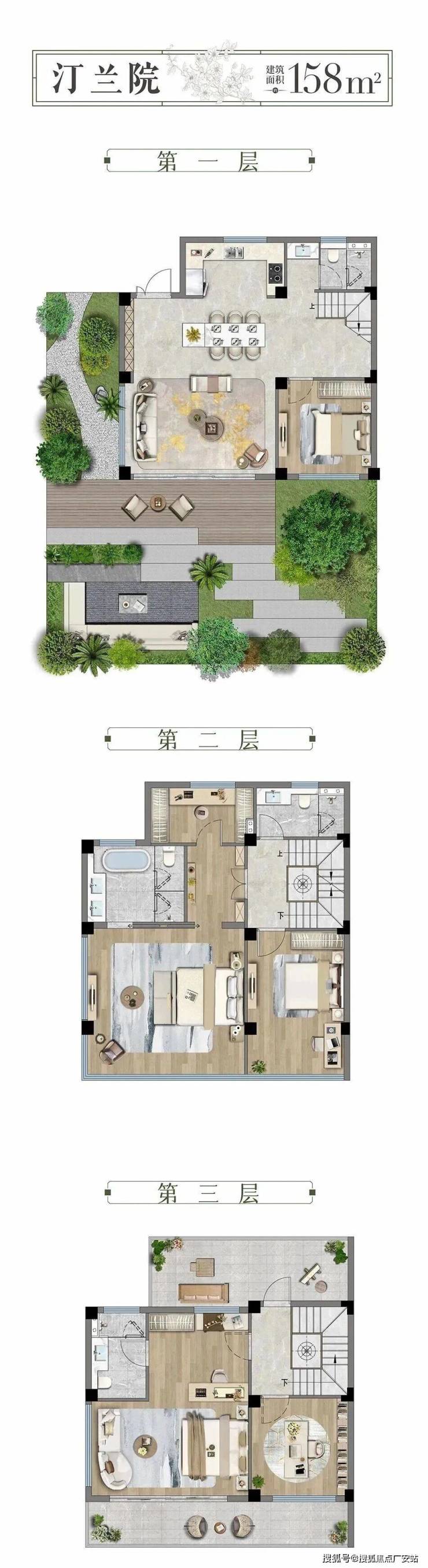 目前,官方公布了三种户型,户型面积为建面约133-158㎡。