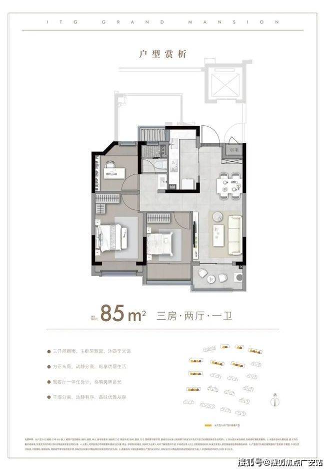 当这个城市的刚需者,也想博弈一套3房。国贸鹭原是用建面约85平方米户型,保留了初心。
