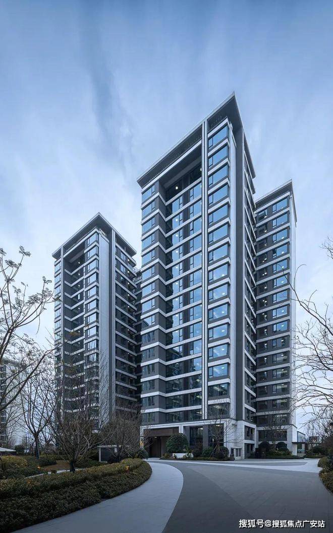 建筑采用不规则、非对称设计手法,外立面延续了大盘整体的高级米白色调,大面积的玻璃幕墙与顶部的挑板让天际线看上去更为美观大气,建筑层次更为丰富,更好地诠释建筑内涵,彰显清新淡雅气质,展现出对艺术与品质的极致追求。