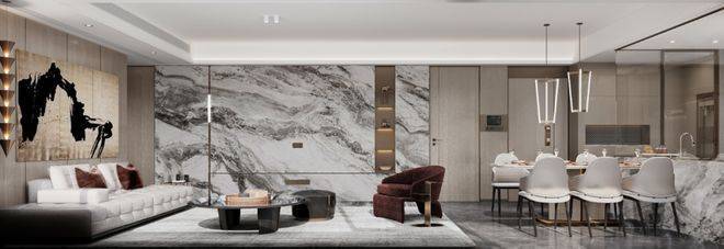 文墨香韵延入前院,书院气息弥漫,空间丰富而多变,自由折线和流畅曲线的母题映衬自然映像,行于画卷,沉入画境。穿过酒店式大堂,即遇见品质调性的多重空间,展现建筑完美、纯净的艺术气息。