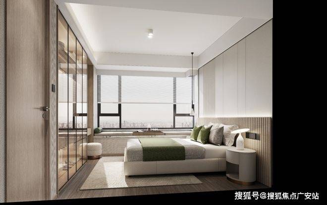 小家化主卧——超大衣帽储物+MINI吧+超大景观面飘窗。南向主卧系统,生活与繁杂拉开距离。