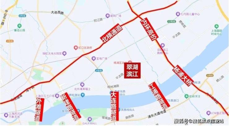 交通方面,周边1公里内有多条轨道交通,东侧约400米有18号线平凉路站,西侧约700米是4号线杨树浦路站,西北侧1公里为4、12号线大连路站。地块到东外滩滨江的直线距离约580米。