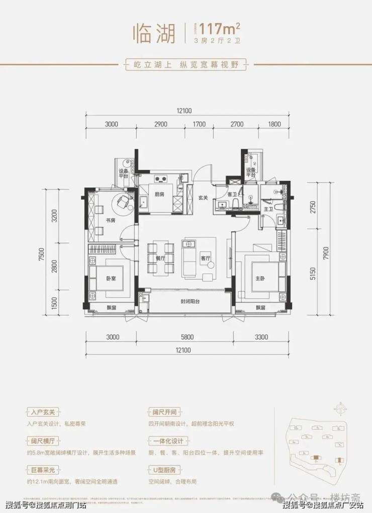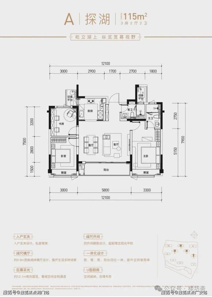 譬如,建面约115方三房两厅两卫,以三开间朝南搭配LDKB一体化阔厅,通过约27方餐客厅与观景阳台无缝串联,尺度彰显气势之外,与公区融合后,衍生出更多社交价值。