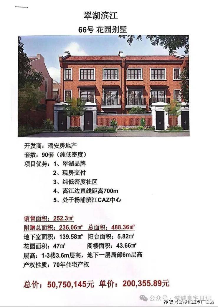 建面239㎡(南、北朝向),总价约4500万元/套;建面252㎡(南、北朝向),总价约5500万元/套。