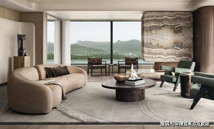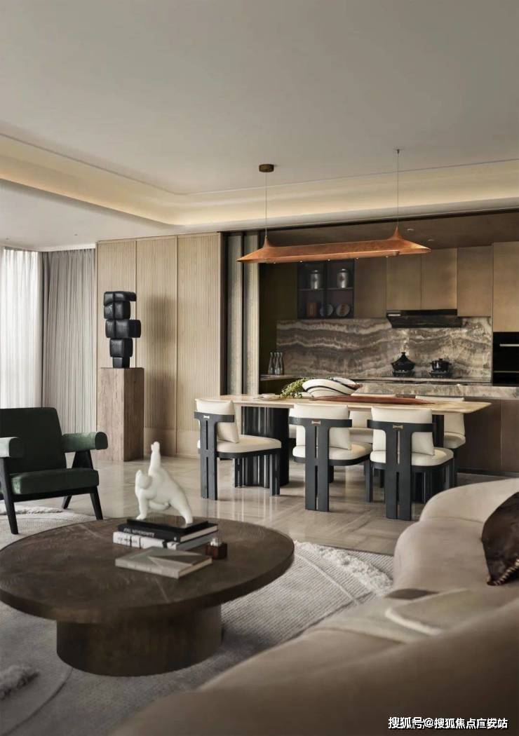 天然石材、木材与黄铜调和出空间醇厚质朴、温润坚定的雅奢调性,亲切而放松。