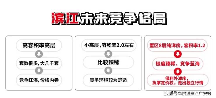 因为未来滨江更多是高容积率高层之间的红海竞争,而项目滨江8层真洋房竞争少,容易走出独立行情。