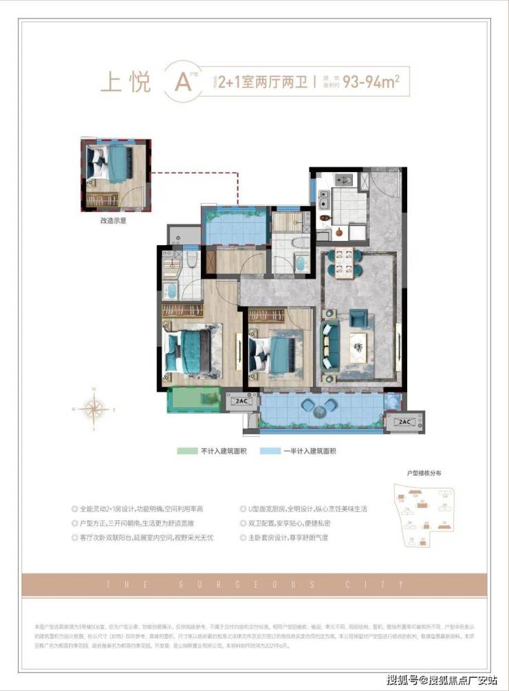 三开间朝南明朗格局,2+1灵动配置空间,成功避免“家庭早高峰”的双卫格局,搭配独立卫浴、衣帽间的主卧套房,让年轻一样可以奢享。