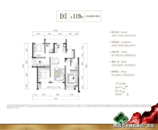 建面约119㎡精致四居,难得一遇的边套南厅舒适格局,约6.5米阳台无界连通餐客厅及独立玄关、套房式主卧,直接带来居住感受的实质性跃升。