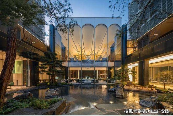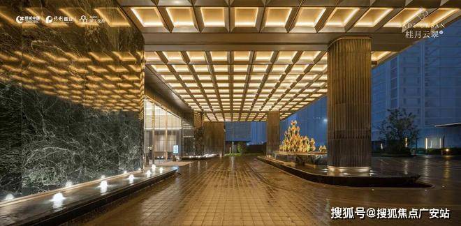 高定归家约50m的“翡月之门”,是绿城保利交控·桂月云翠带给人的最初印象。流金穹顶与皇家金檀大理石构画的背景前,一方环岛车行落客区,令五星级酒店式归家成为现实。“明月松间照,清泉石上流。”王维独到的山水观,在下沉式庭院“空翠砯崖”上演。