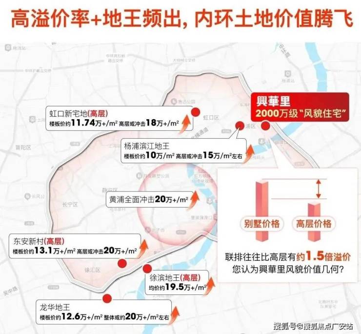 近期土地市场大热,且高溢价丝毫没有停下的态势。前有绿城徐滨地王开出19.5万/㎡,后有龙华地王,整盘预期或近20万/㎡,紧接着虹口内环又诞生地王,有望冲击18万+/㎡,最近五批次土拍,杨浦内环也诞生地王,高层有望冲击15万/㎡。