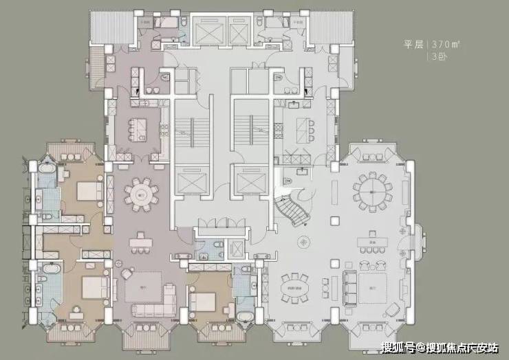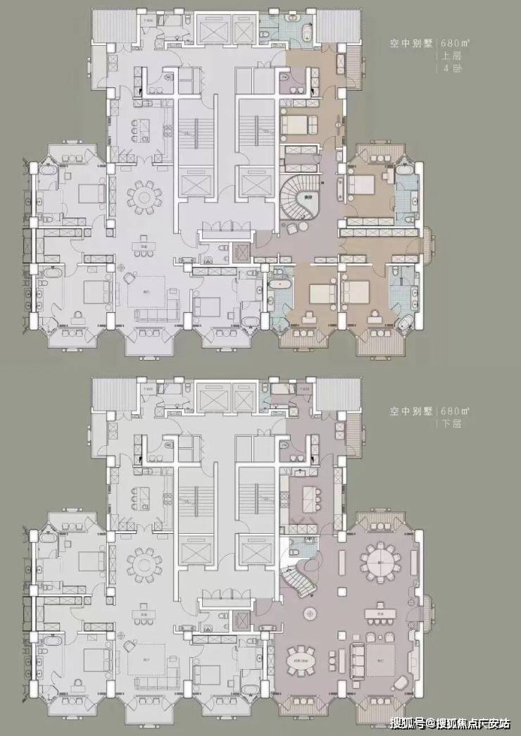 住宅部分全部大平层(复式)设计,单套面积约370-1500㎡,全部精装交付。