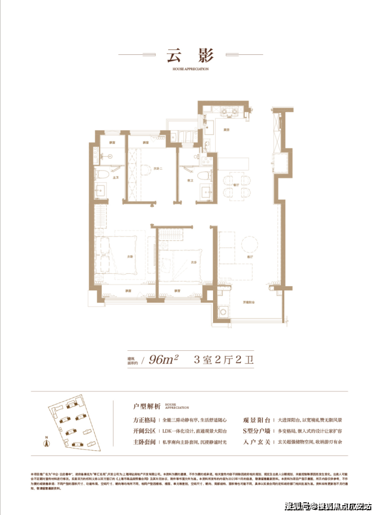 建面约96㎡三房两厅两卫