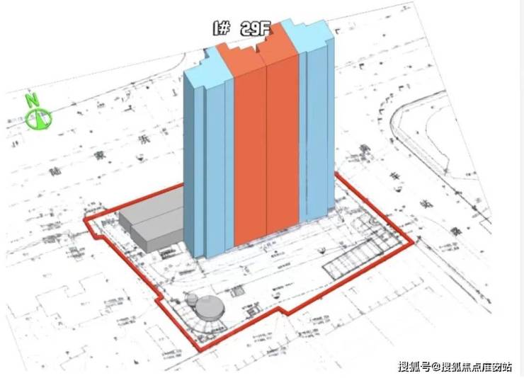 根据设计方案显示,项目拟建1栋总高29F住宅楼,以及1栋1F商业+1栋居委会+老年活动室等社区配套。