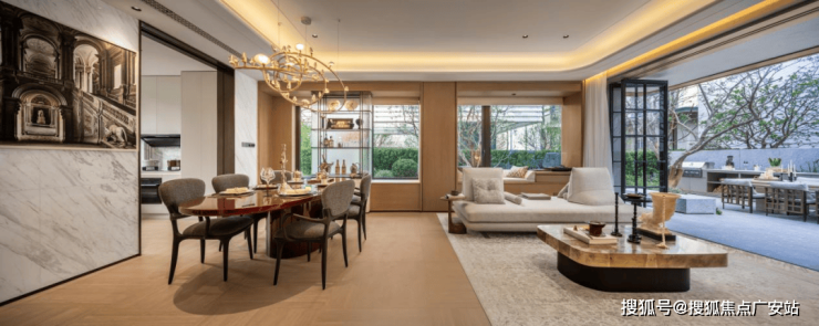 【全景光厅】:下叠一层引入270°全景采光客厅,全明通透的格局邀纳天光云影;庭院花园,盛放自然的万般诗意;闲坐庭院,身心自然而然的松弛。