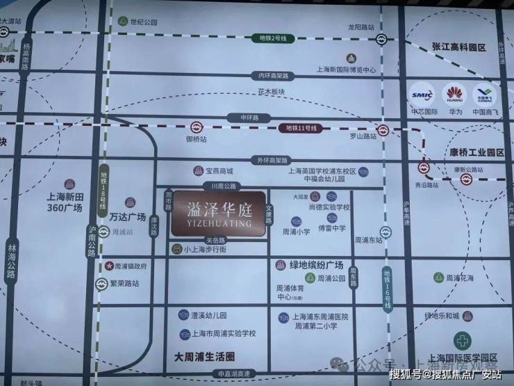 项目位于浦东新区周浦镇核心板块,东至周康路、南至年家浜路、西至沪奉高速、北至周祝公路,距18号线繁荣路站约800米,地处"张江-前滩-临港"黄金三角区域,15分钟直达张江科学岛,25分钟抵达临港新片区。作为上海"十四五"规划中"张江科学城拓展区"的重要组成部分,周浦正从"传统集镇"向"科创生活城"转型,区域价值持续提升。