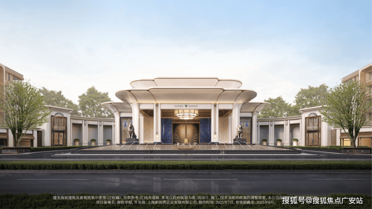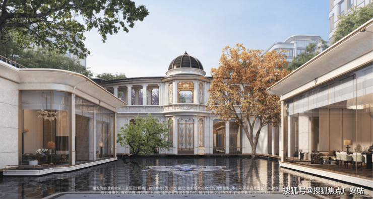 环抱式落客区灵感来自意大利许愿池,细看池底却铺陈龙鳞祥纹,含蓄传递东方祥瑞。