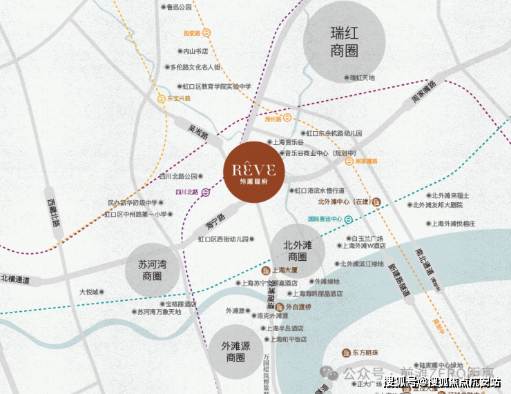 商业配套:利通广场、壹丰广场、中信广场、1933 购物中心等在步行距离内,直线距离北侧瑞虹新城三件套约 1.5 公里。