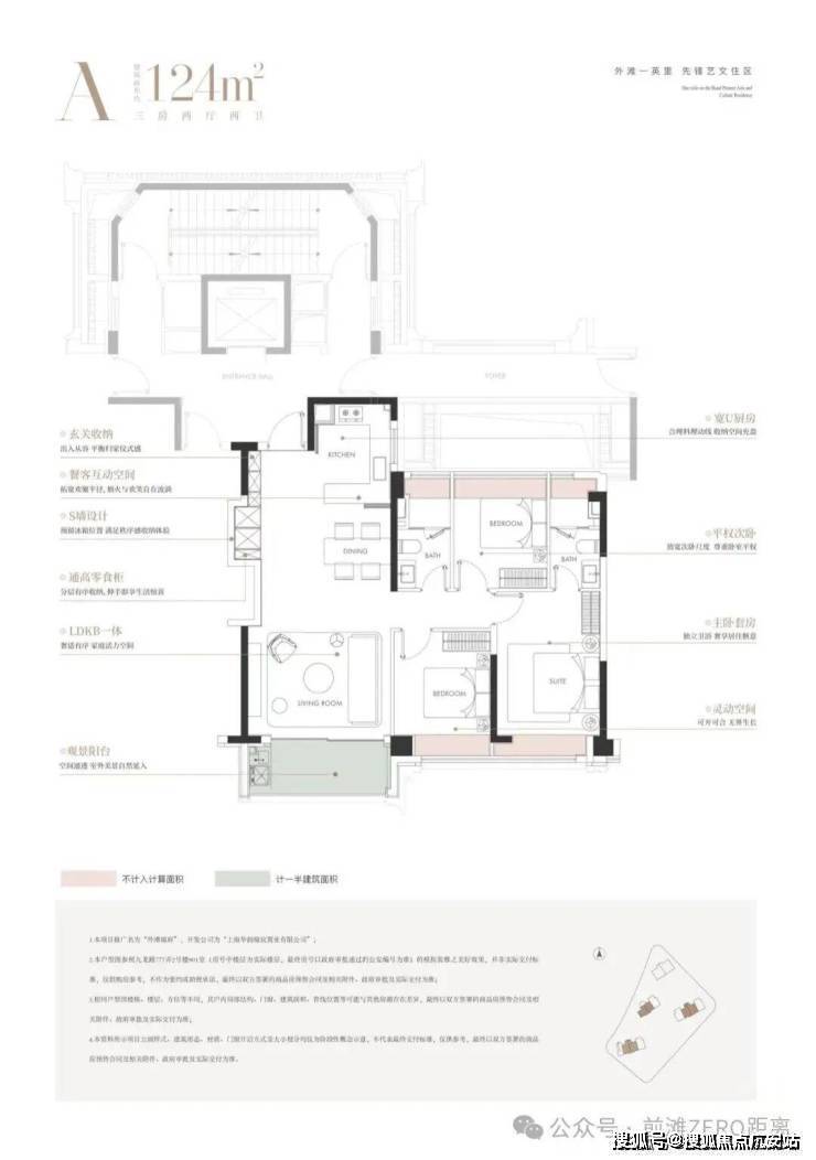 建面约124㎡3房 总价约1600-1900万
