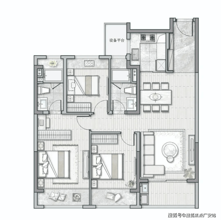 7.次套房,与主人套房分区设计,尽享求同存异的生活便利