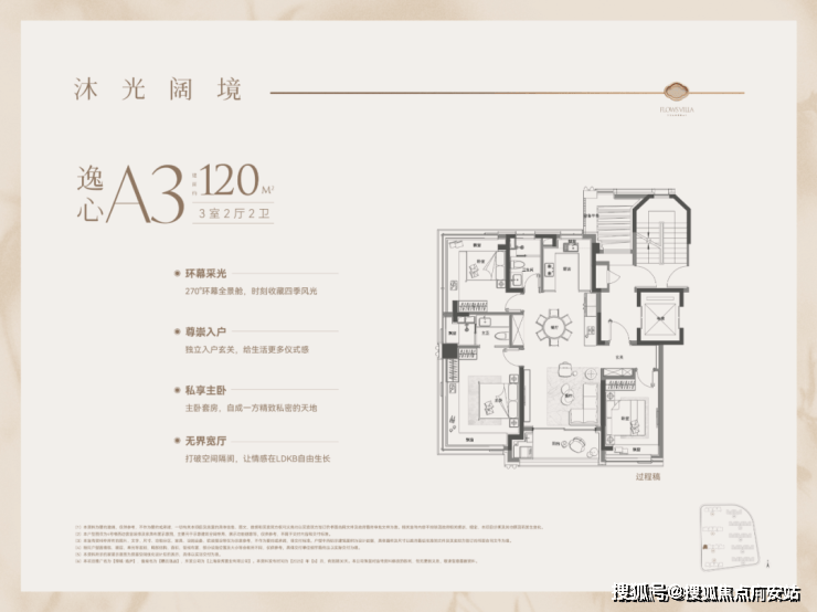 4、6号楼采用类一梯一户设计,每户享有独立电梯厅(约7-8㎡可利用空间),可以作为“外玄关”使用;全屋飘窗对于套内来说,也是额外的使用空间。