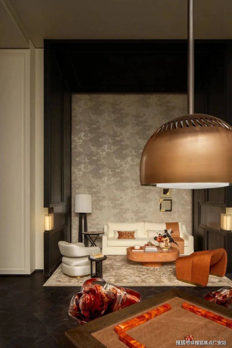 复古空间,设计笔墨不宜轻,也不宜过重。在这座空间中,设计师将纹理与留白进行平衡,丰盈与简约在室内的比例十分克制。