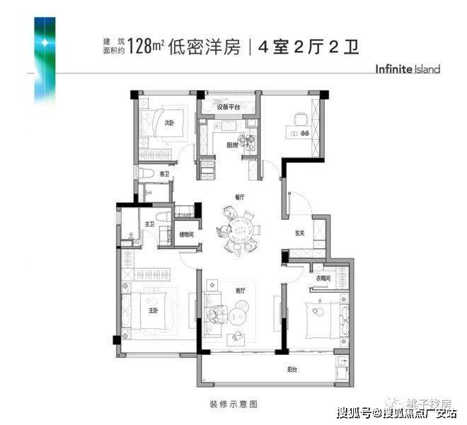 星缦云渚售楼处电话☎:400-8558-224建面约128㎡户型为四房两厅两卫,该户型最大亮点是超高的得房率,也是最受市场欢迎的“四叶草”户型,四个卧室互不打扰,充分保证后期的生活隐私。户型尺度上也同样阔绰,近7米的双开间阳台,2.7m宽的U型厨房,每一个小空间内都可以承载很多的生活场景。