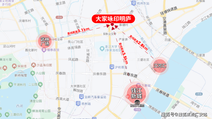 咏印明庐所在的安琪儿可谓是天赋福祉。从地图可以看出,以项目为原点擘划3公里范围刚好是由武林、钱江新城、江河汇等多个核心板块众星捧月而来。