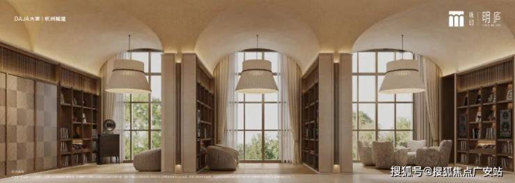 咏印明庐每幢住宅楼下都做了主题泛会所,未来仅供小区内业主使用。其中已经实景呈现的就有一个茶叙空间,还有个超级出圈的图书馆。它的灵感,源于都柏林圣三一学院图书馆,扶着旋转楼梯而上,流动的光线,超5000册书本,使人仿佛真的置身于霍格沃兹的回廊之间。