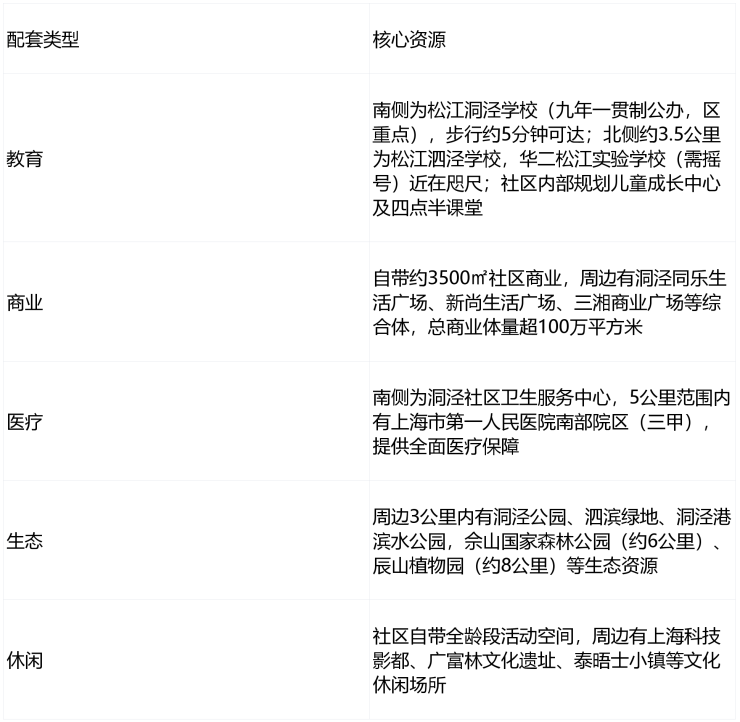 全龄教育覆盖:3公里范围内分布着松江区实验小学、松江泗泾学校、华二9年一贯制(需摇号)等6所优质学校,满足从幼儿园到高中的全龄段教育需求