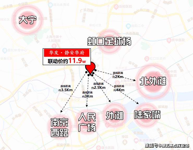 【华发·静安华府】直线距离人民广场约3公里,直线距离外滩约2.5公里,直线距离南京西路约3.2公里,直线距离陆家嘴也仅约3公里,直线距离北外滩更是仅约2公里。同时背靠虹口龙之梦商圈和大宁商圈。