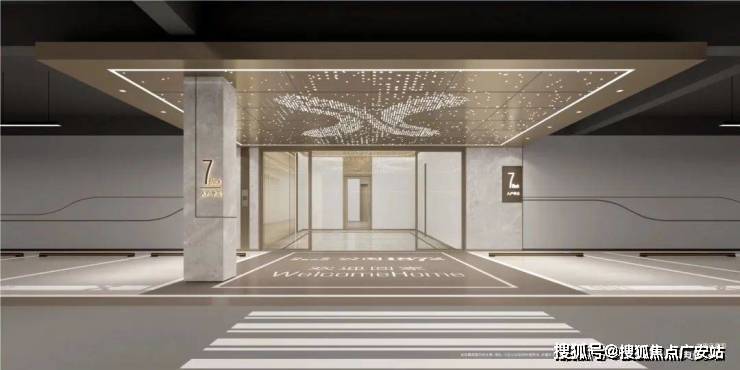 地下大堂落客区同样以星空顶点缀,轻盈墙面,打破常规砖墙的实体感;地面同玄关采用亮面工艺,融入品牌元素,增加归家仪式感。