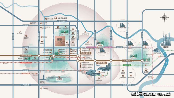 同时,华新,作为是大虹桥商务区的扩展部分之一,也是长三角进入大虹桥的必经之路,定位为大虹桥的配套居住区和功能服务区。